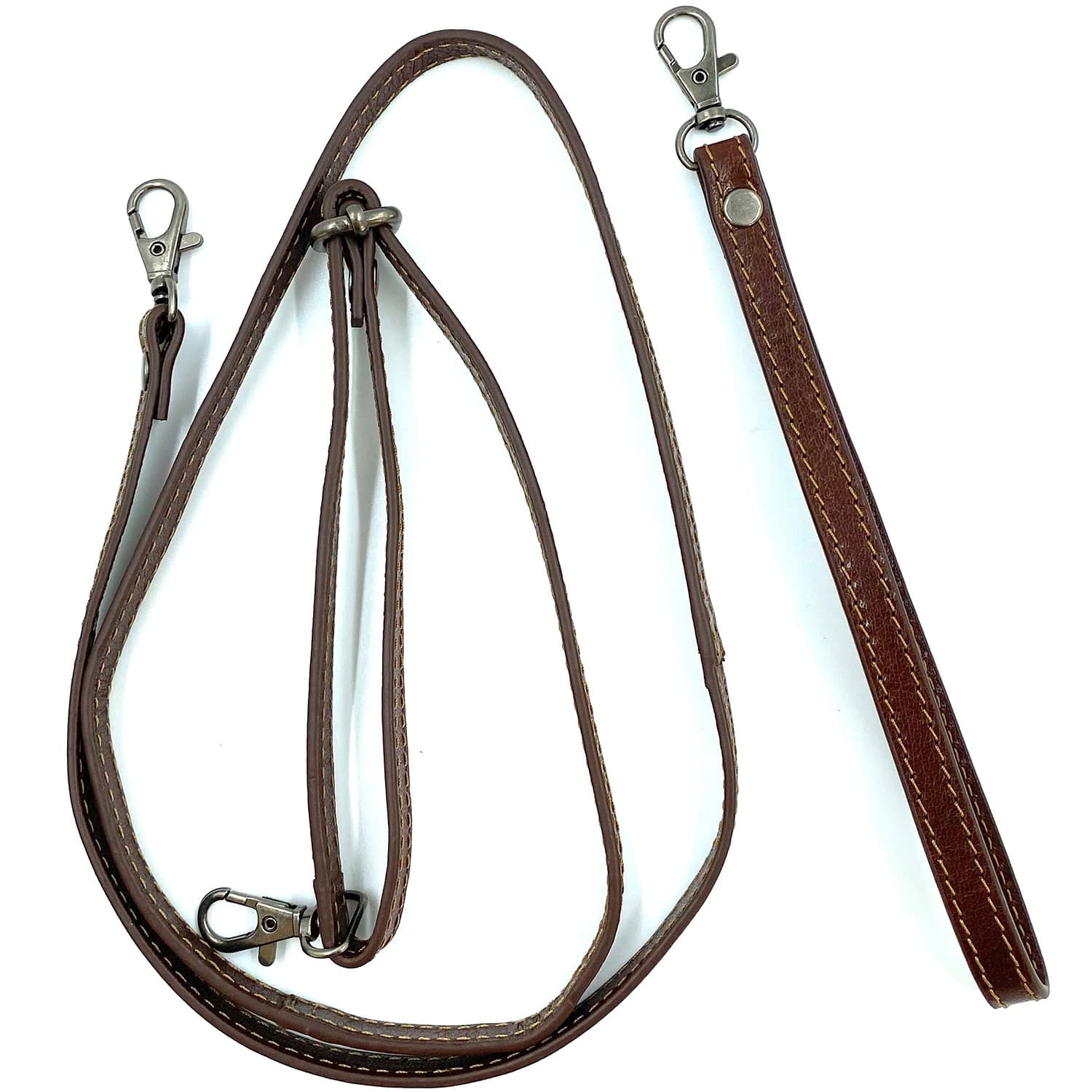 Handväska läder brun med avtagbara remmar 3 väskor i 1. Handväskan finns även i svart läder Handväska i skinn Biori 5118-S