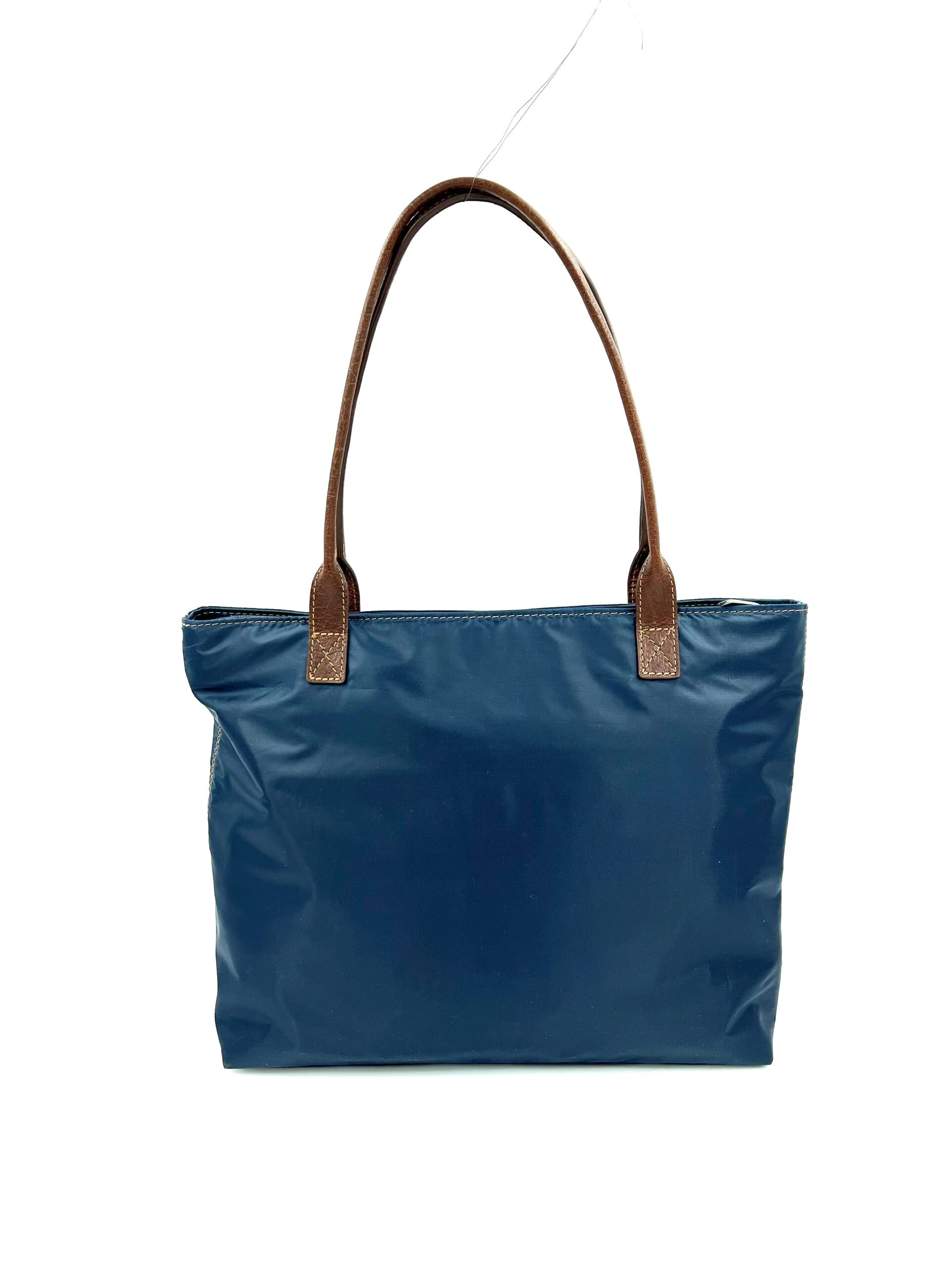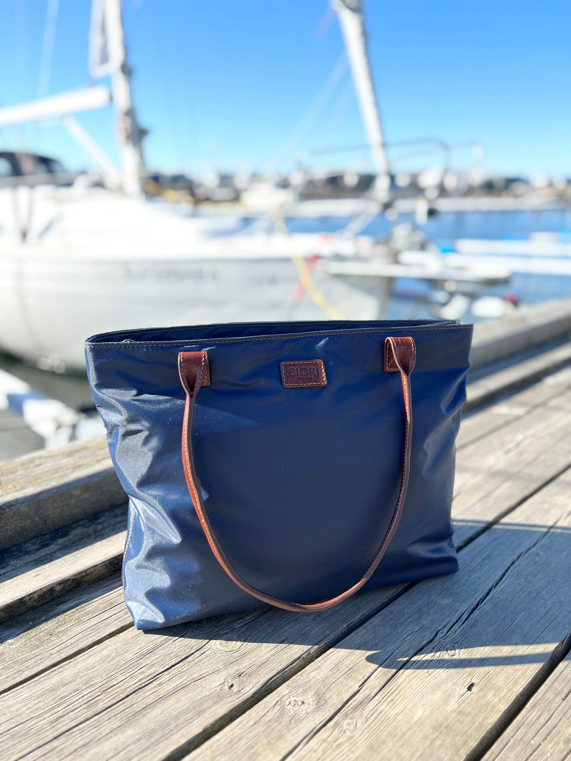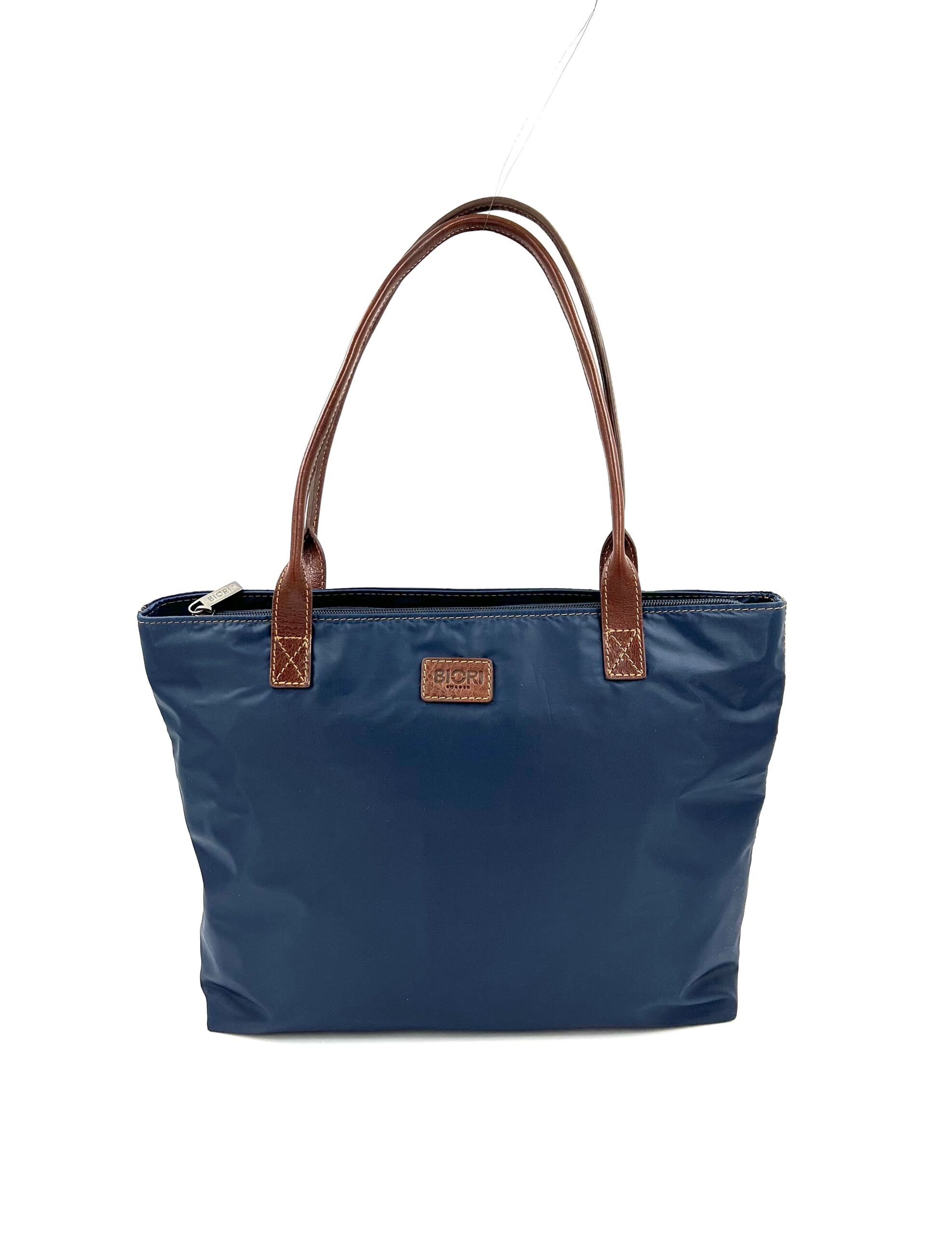 Tote bag Biori 5138-N i marinblå nylon med långa bärhandtag i läder för axeln. Perfekt shoppingkasse i marinblått. Finns även i svart Tote bag BIORI 5138-S och i brunt Tote bag BIORI 5138-B