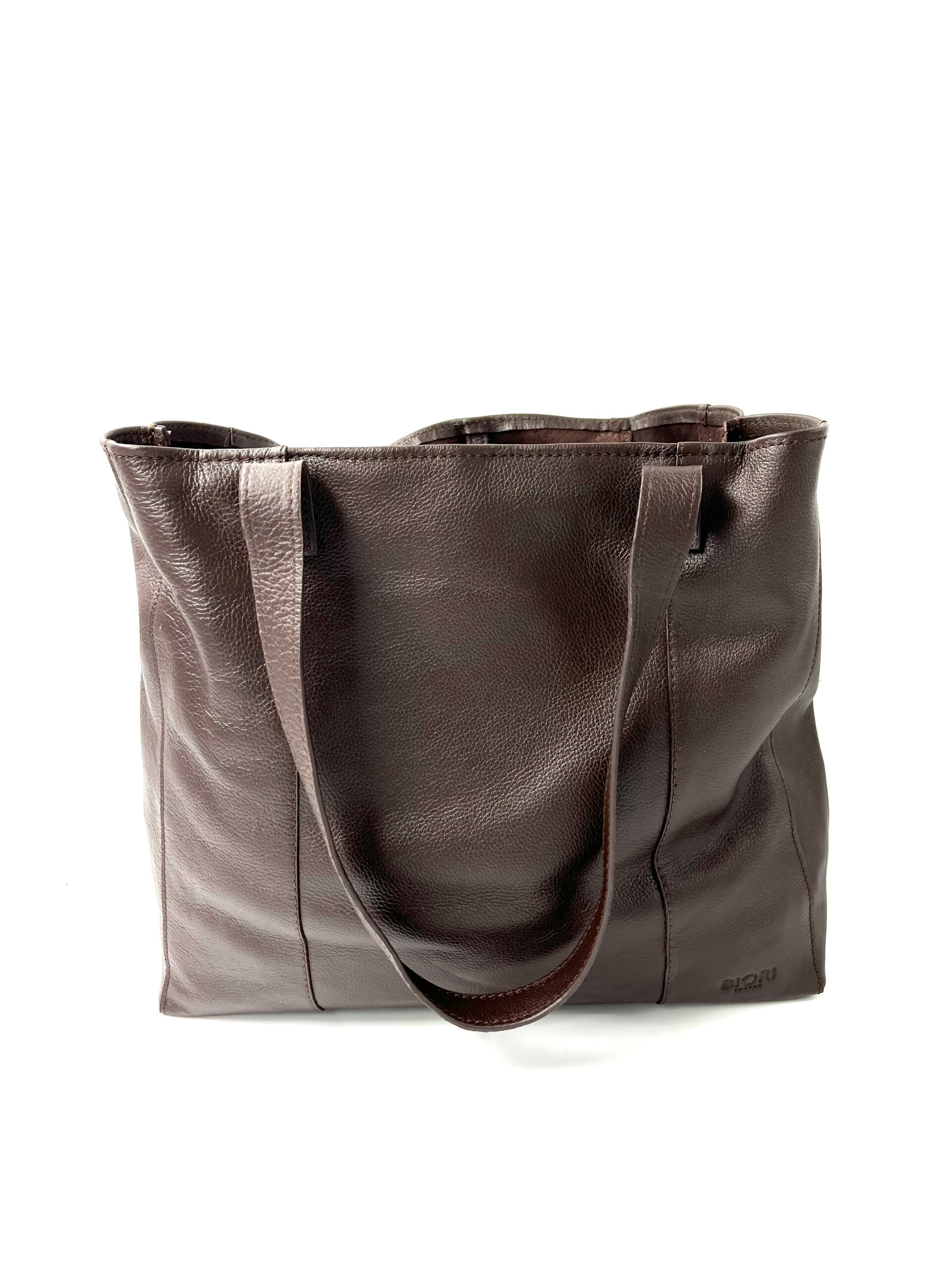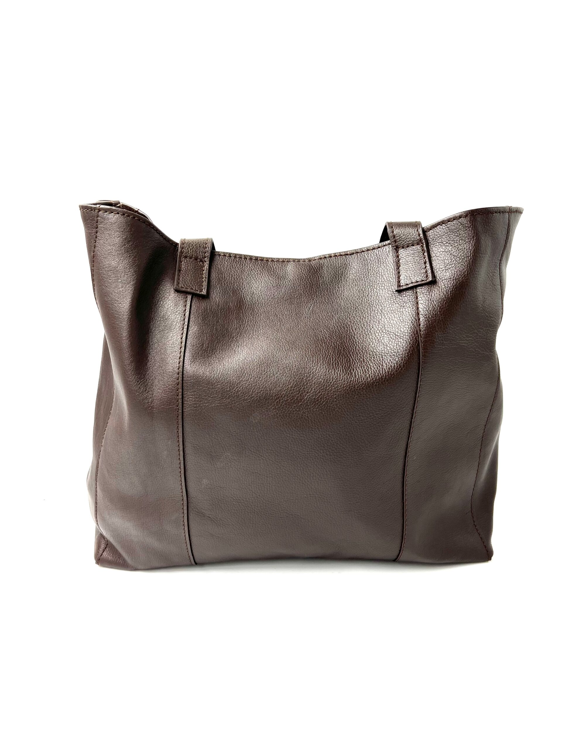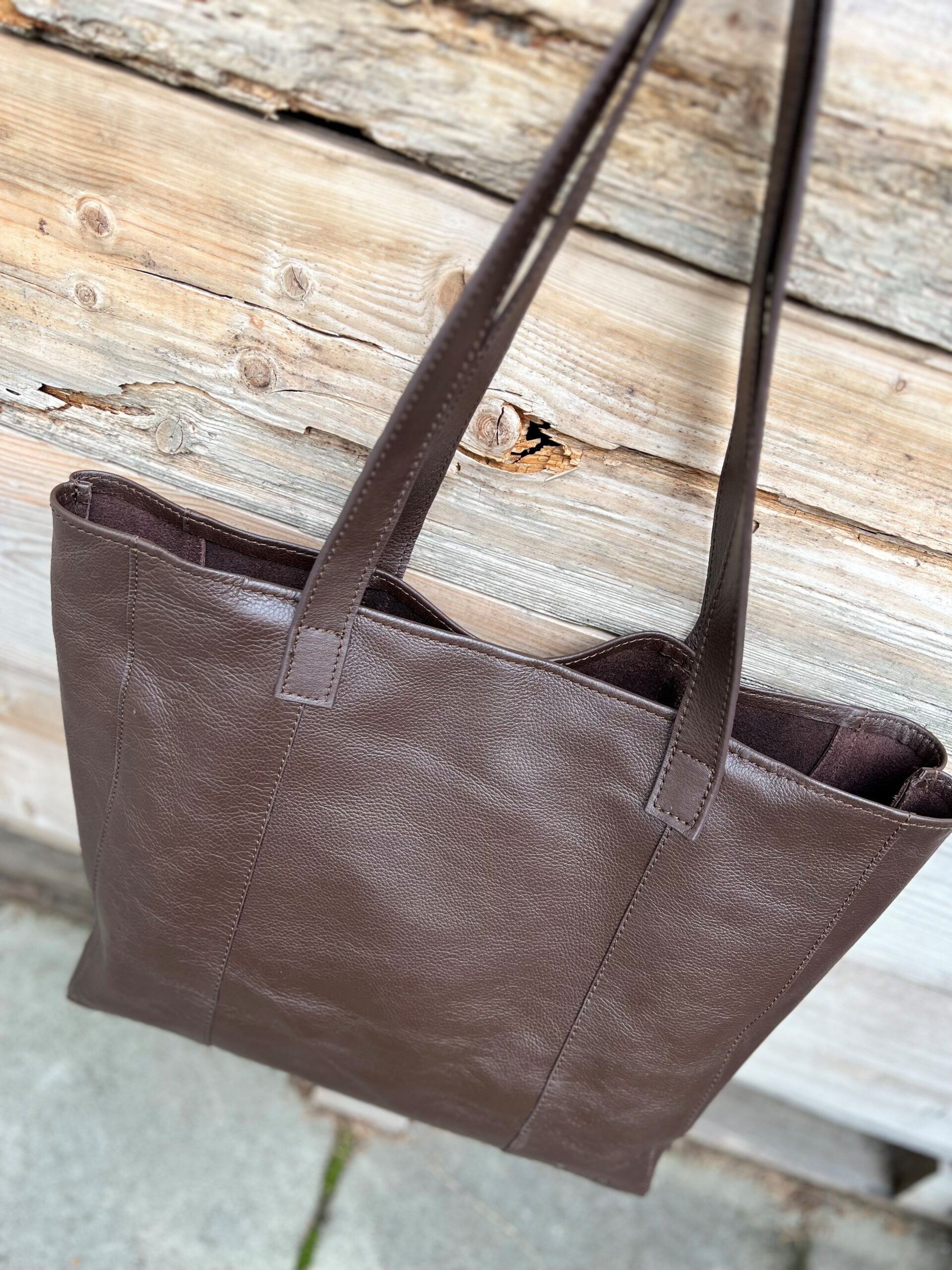 Tote bag mörkbrunt skinn.